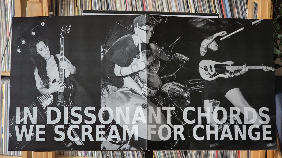 Diese queere Band ist, ich habe mich kurz mal durch ihre üppige Diskographie bei Bandcamp gehört, gewachsen und ganz sicher lauter und wütender geworden. Sie haben wohl eher mal mit Straight-Edge-Hardcore angefangen, als mit dem dystopischen Hardcore, der auf dieser Platte seinen Ausbruch gefunden hat. Das liegt vermutlich am Weggang der Sängerin und der Gitarristin, denn nun haben sie eine neue Gitarristin, die das Trio komplettiert.