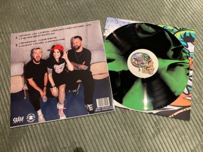 Einen Pluspunkt gibt’s dann noch für’s Artwork. Das Hirn geht surfen und alles ist schön bunt. Da werd‘ ich dann auch wieder zum Berufsjugendlichen. Die Platte selbst gibt’s in bester SBÄM-Manier in grellbunter Splatter-Version oder in nicht ganz so aufreißerischer Green/Black-Version tatsächlich und am besten wohl direkt bei SBÄM.