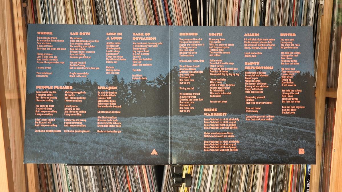 „people pleaser und strassen“ (was der erste Song in deutscher Sprache ist) erinnert mich ein wenig an Dead Years und weht eine neue Farbe in die robuste Klanglandschaft. Wobei sie auf den ganzen Hall verzichten.