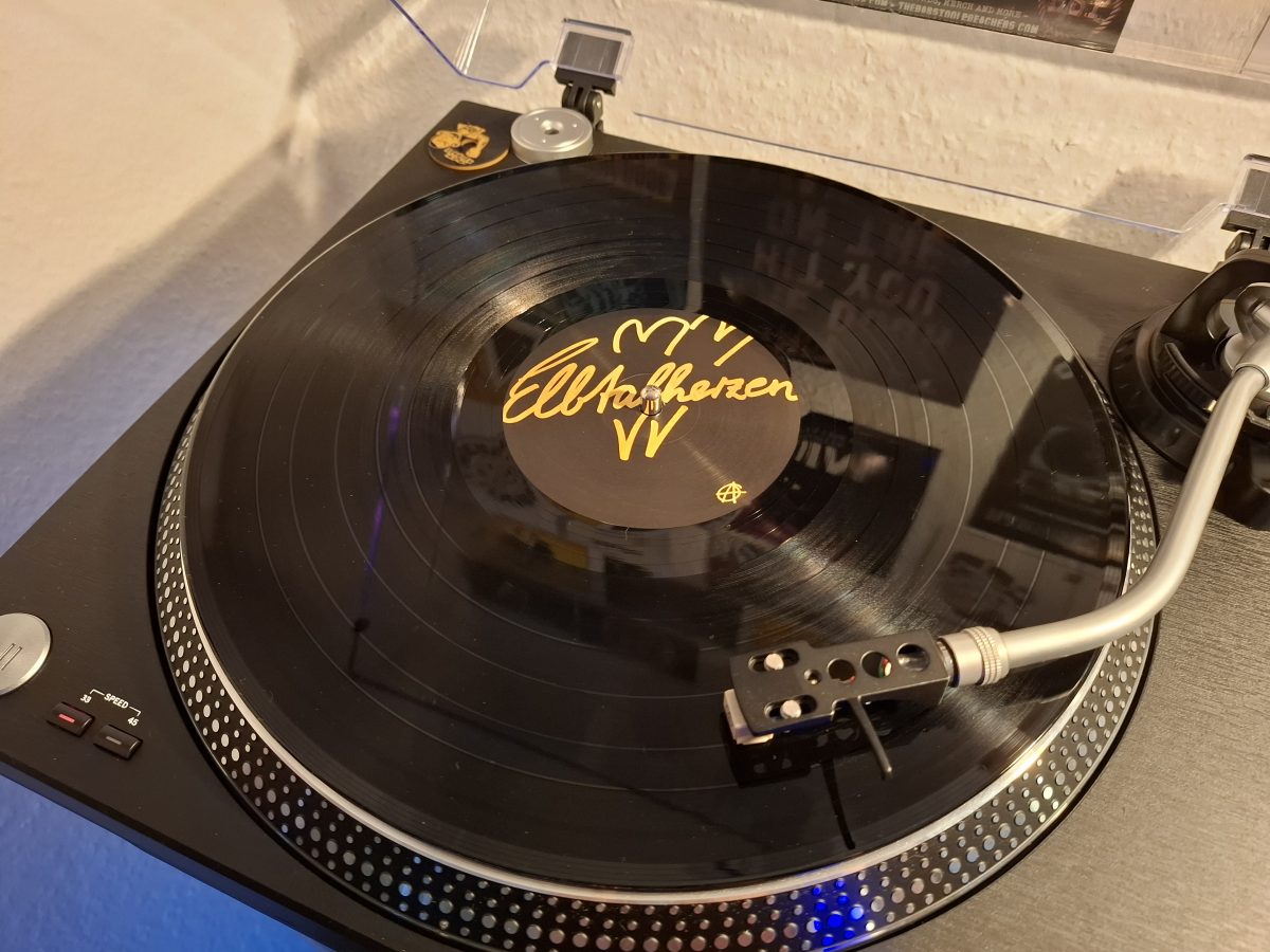Optisch wirkt die schwarze LP, welche mir vorliegt & auch wahlweise in rot erhältlich ist, wie eine Testpressung. Denn das CenterLabel zeigt ausschließlich das Logo der Elbtalherzen & ein kleines Anarchiezeichen, um auf die A-Seite hinzuweisen.