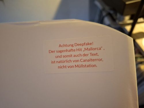 Der Text des Songs „Mallorca“ wurde hier Müllstation zugeschrieben, obwohl es sich dabei um Canal Terror handelt. Darauf weißt auch ein kleiner Sticker hin.