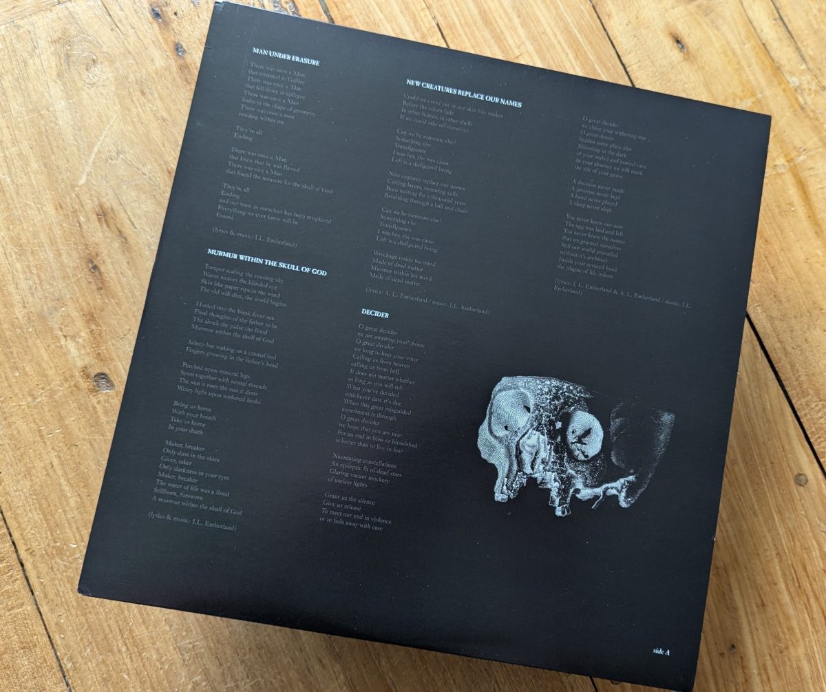 Gleich der eröffnende Titeltrack gibt die Richtung vor: Spoken-Word-Passagen treffen auf elektronische Klangtexturen, während sich ein düsteres Thema rund um Entmenschung und Selbstverlust abzeichnet. „Murmur Within the Skull of God“ folgt als wuchtiger Gegenpol – ein brachiales Wechselspiel aus Blastbeats, sägenden Gitarren und einer Gesangsleistung, die zwischen wildem Geschrei und melancholischem Klargesang oszilliert. Hier zeigt sich eine der größten Stärken der Band: die stimmliche Vielseitigkeit von Sängerin Ada Lønne Emberland, die den Songs eine immense emotionale Tiefe verleiht.