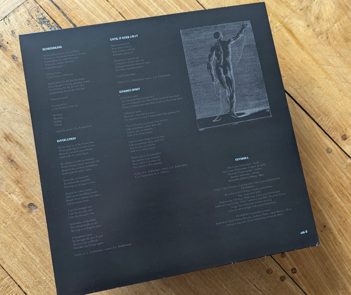 Mit ihrem Debütalbum „Man Under Erasure“, herausgekommen auf dem für dunklere Musik spezialisierten Label Dark Essence Records, legt die aus Oslo stammende Band Feversea einen musikalischen Brocken vor, der sich nicht einfach einordnen lässt – und genau darin liegt ein wesentlicher Reiz dieses Werks. Die Norweger verweben auf etwa 44 Minuten Spielzeit Elemente aus Black Metal, Post-Metal, Sludge, Shoegaze, Neofolk und sogar Post-Punk zu einem dichten, atmosphärisch aufgeladenen Klanggeflecht, das sowohl emotional als auch intellektuell fordert.