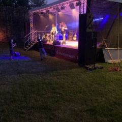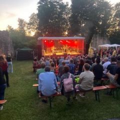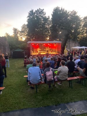 Aber: AC/DC wurden letztes Jahr im Zuge der Kulturtage auf der Burg in meinem Heimatkaff in Form einer Tribute-Band gehuldigt, heuer sind Led Zeppelin dran – und zwar in Form des Berliner Quartetts Lord Zeppelin. Zunächst einmal: passender hätte die Location wohl kaum sein können. Das alterwürdige Burggemäuer, bzw. das, was noch davon übrig ist, der Herren zu Hohenstein ist die perfekte Kulisse für die Klone von Robert Plant und Co, die doch auch gerne mal mit ollen Schwertern durch ihre Videos hüpften, v.a. aber auch dem einen oder anderen ihrer Songs so ein bisschen Mittelaltermystik mit auf den Weg gaben.