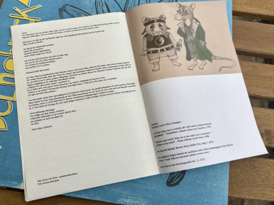 Es gibt auch was für’s Auge. Auf einer Illustration mit Hamster, Ratte, Platte wird das Albumcover präsentiert. Da die eigenwilligen Nager ungern 100 Jahre lang immer gleich aussehen, obwohl sie die immer gleichen Klamotten anhaben, lasen sie sich am liebsten von unterschiedliche Leuten illustrieren. Die heutige Illustration stammt von electric.lizard, die auch das Albumcover von „Niemand leibt dich (mehr)“ gestaltet hat.