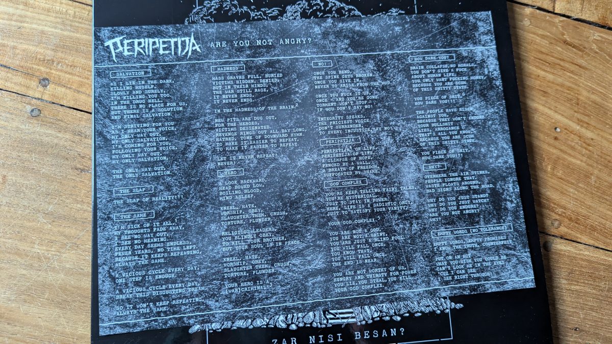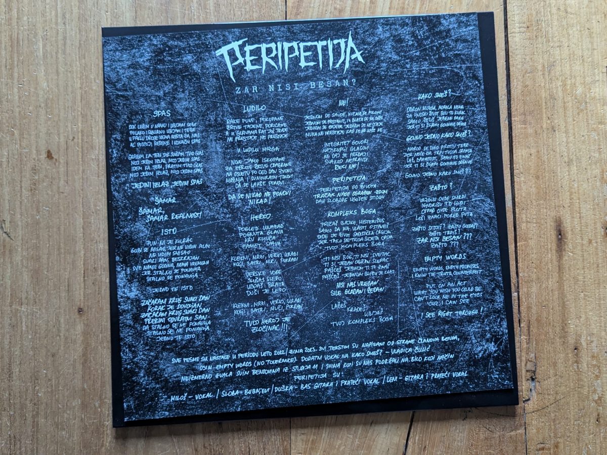 Szenepolitisch ist „Zar nisi besan?“ ein klares Statement: Peripetija positionieren sich offen als antifaschistisch, antinationalistisch und gegen kapitalistische Ausbeutung. Dass sie ihre Texte in serbischer Sprache belassen, verleiht den Songs zusätzliche Wucht – es ist Hardcore, der im regionalen Kontext verwurzelt ist und gleichzeitig international verstanden werden kann. Die DIY-Haltung ist in jedem Detail spürbar: Aufnahme, Mix und Artwork entstanden im engen Band- und Freundeskreis, fernab kommerzieller Strukturen.
