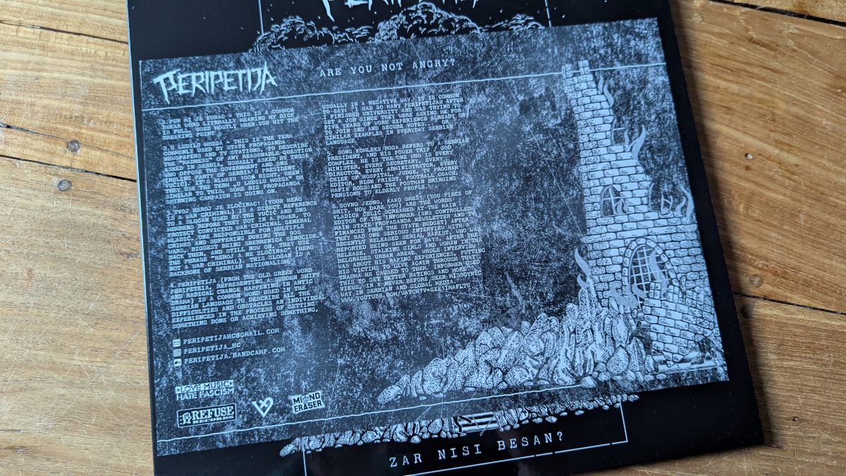 Mit „Zar nisi besan?“ (zu Deutsch: „Bist du nicht wütend?“) legt die serbische Straight-Edge-Hardcoreband Peripetija ein Debüt vor, das in vielerlei Hinsicht bemerkenswert ist. Veröffentlicht 2024 über Refuse Records, gemeinsam mit In My Heart Empire und Mind Eraser Records, steht die Platte ganz im Zeichen von DIY-Kultur, Antifaschismus und radikalem Hardcore-Sound.