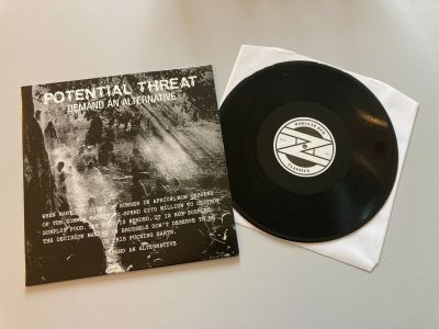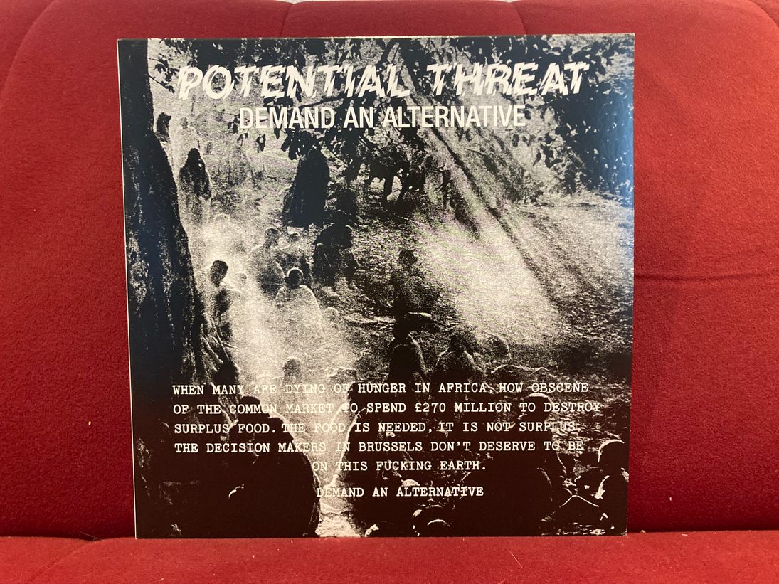 Das Album war seinerzeit der erste Longplayer der 1981 in Blackburn gegründeten Band und erschien im Original auf Mortarhate Records, dem Label der aus London stammenden Anarchopunks Conflict. Diese wiederum veröffentlichten ihre erste EP „The House That Man Built“ 1982 auf Crass Records. Ihr ahnt es schon, na klar: das wiederum war das Label der wohl bekanntesten Vertreter der britischen Anarchoszene, nämlich von Crass. Und so schließt sich der Kreis. We’re a happy family und so. Eher eine „angry family“, wenn ich mir „Demand An Alternative“ so anhöre. Super aggro, das Teil und trotzdem ist da so eine feine Note an Melodien vorhanden. Als großer Fan der (frühen) Adolescents muss ich instant an die denken, angesichts des Tempos, der Stimme und des Songwritings von Potential Threat. Und somit ist klar, die Blackburner*Innen machen das Rennen am englischen Anarchohimmel.