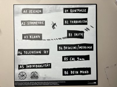 Wir wechseln die Seite und Track B1 „Kontrolle“ fegt wie ein Zyklon aus der Rille -rasende Sequenzen und eindringliche Vocals schildern ein Gefühl der Überwachung und Fremdsteuerung. Der repetitive Rhythmus gibt dem Stück eine fast tranceartige Wirkung. Absolut tanzflächentauglicher Track in EBM-Tradition.