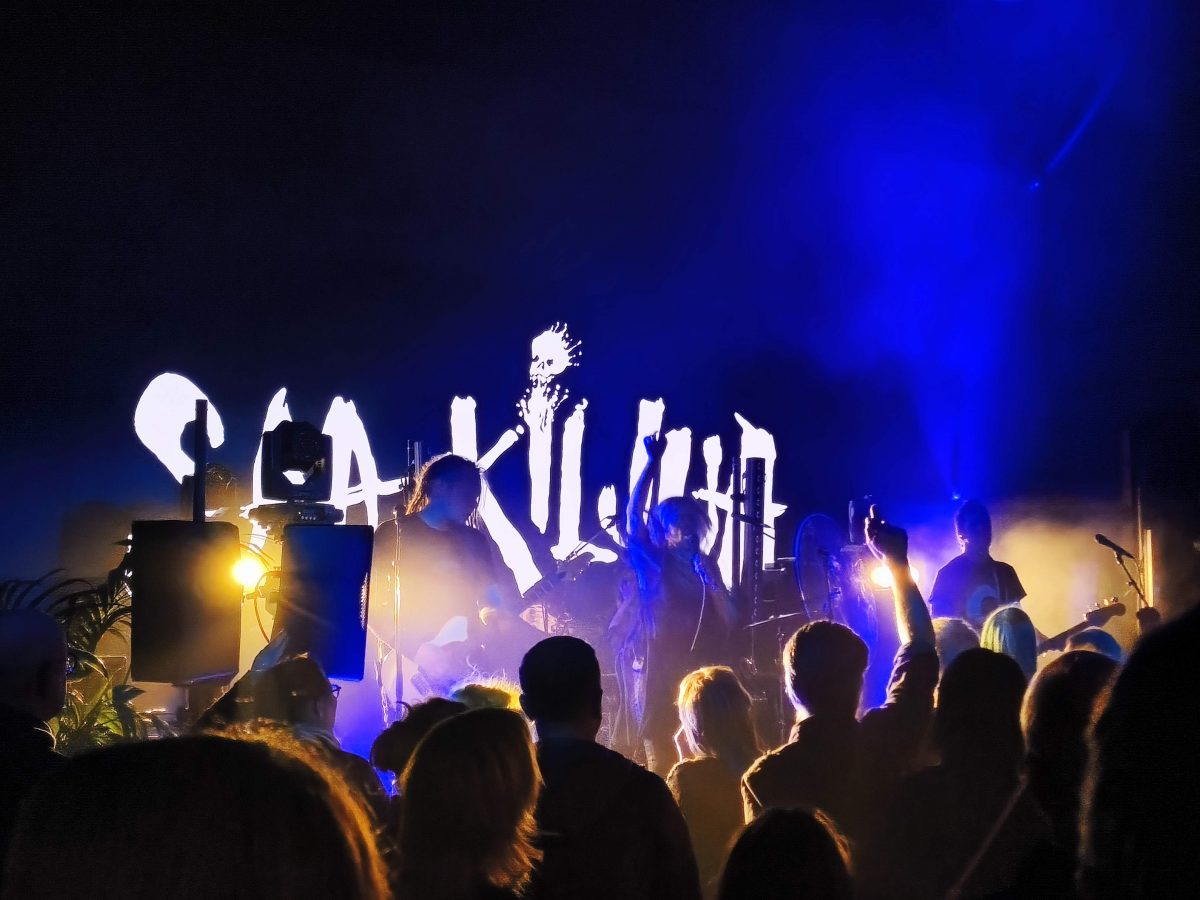 Anschließend, und auch wieder die letzte Band an diesem Abend für mich, denn ich war schon ziemlich durch von den letzten Tagen, waren die estnische Band The Boondocks. Die Boondocks brauchten für den Aufbau relativ lange, dementsprechend verzögerte sich der Beginn um ein paar Minuten. Die Halle füllte sich immer mehr. The Boondocks sind im Baltikum auch eine große Nummer und haben schon ein paar Alben rausgebracht. Ihr neuestes ist Silver Buzz. Die Band hatte eine, sagen wir mal, komische Bühnenpräsenz. Da war der Bassist, der aussieht wie der Schauspieler aus Magnum, der aber fast durchgängig die Zuschauer angegrinst und dem man den Spaß am Spielen angemerkt hat. Dann war da der Gitarrist, der aussieht wie der Schauspieler Charlie Heaton aus Stranger Things und dann ist da der Sänger, der wenig lächelnd mit den Zuschauern interagiert hat. An sich auch kein Muss, aber irgendwie hat der Sänger und die Sängerin doch eine mitreißende oder tragende Rolle – find ich. Da die Band rock’n’rollig und bluesig unterwegs ist, hab ich mir da ein bisschen mehr erhofft. Nichts desto trotz war es ein super Konzert. Die Menge hatte Spaß. Ich hatte Spaß, auch wenn ich so gar keinen Bock mehr hatte. Alles war schön und ich hatte einen guten Abschluss. Nach The Boondocks spielten noch Maria Kallastu und boipepperoni, Kermo Murel und QSLAP, die gemeinschaftlich als KLAP aufgetreten sind.