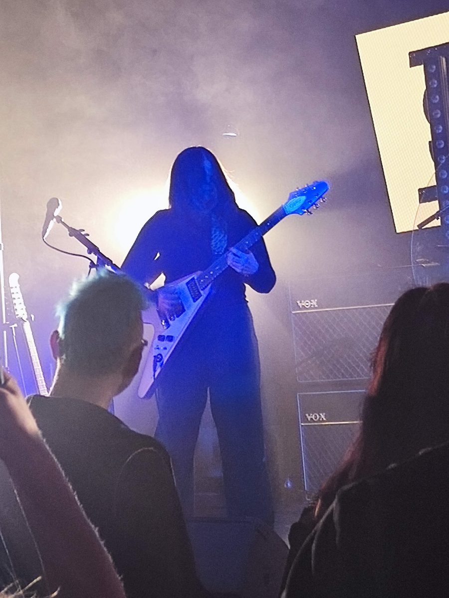 Nach einer weiteren Ab- und Aufbauphase folgt der nächste finnische Punkrock. Die Band heißt Ajno & Hajonneet und scheint schon eine größere Nummer in Finnland zu sein. Diese ist ebenfalls female fronted. Angesagt wurde die Band als „they are more than a punkband..:“ und damit versprach der Label-Gründer von Stupido Records durchaus das, was uns erwartet hatte. Gegründet haben sich Ajno & Hajonneet während der Pandemie. Und all diese Energie die sie dort gesammelt haben und die geballte Energie von 6 Personen in einer Band bringen sie auf die Bühne. Die Frontfrau erinnert mich an Courtney Love … ihr erinnert euch bestimmt, die Ex von Kurt Cobain. Über die gesamte Konzertlänge fegt die Sängerin über die Bühne als gäbe es kein Morgen.