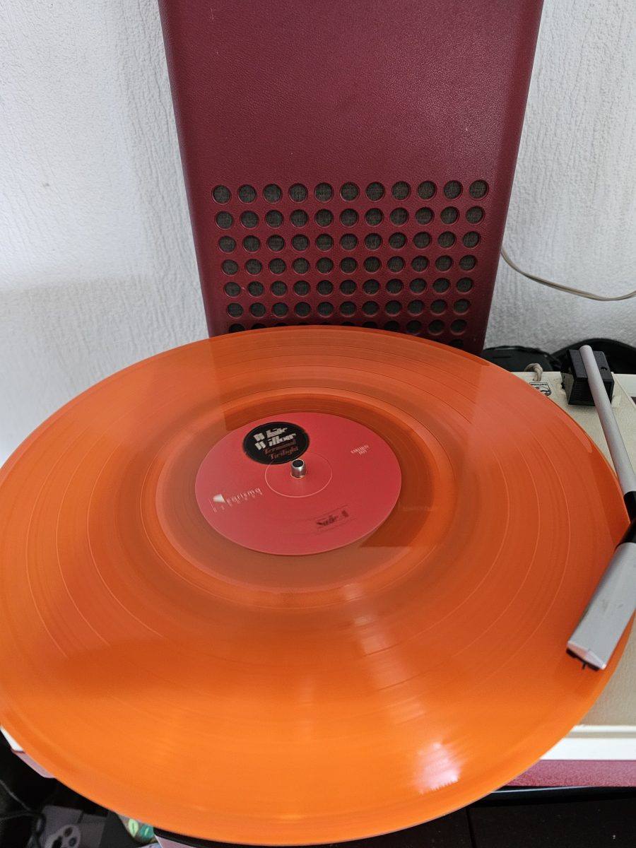 Auch die Schallplatte, ja, zu Rezensionszwecken hatte ich eine der auf 300 limitierten orangenen Vinylschallplatten bekommen, ist optisch, haptisch und natürlich akustisch ansprechender als eine CD oder ein Link zu Spotify und auch das schraubte die Erwartungen hoch.